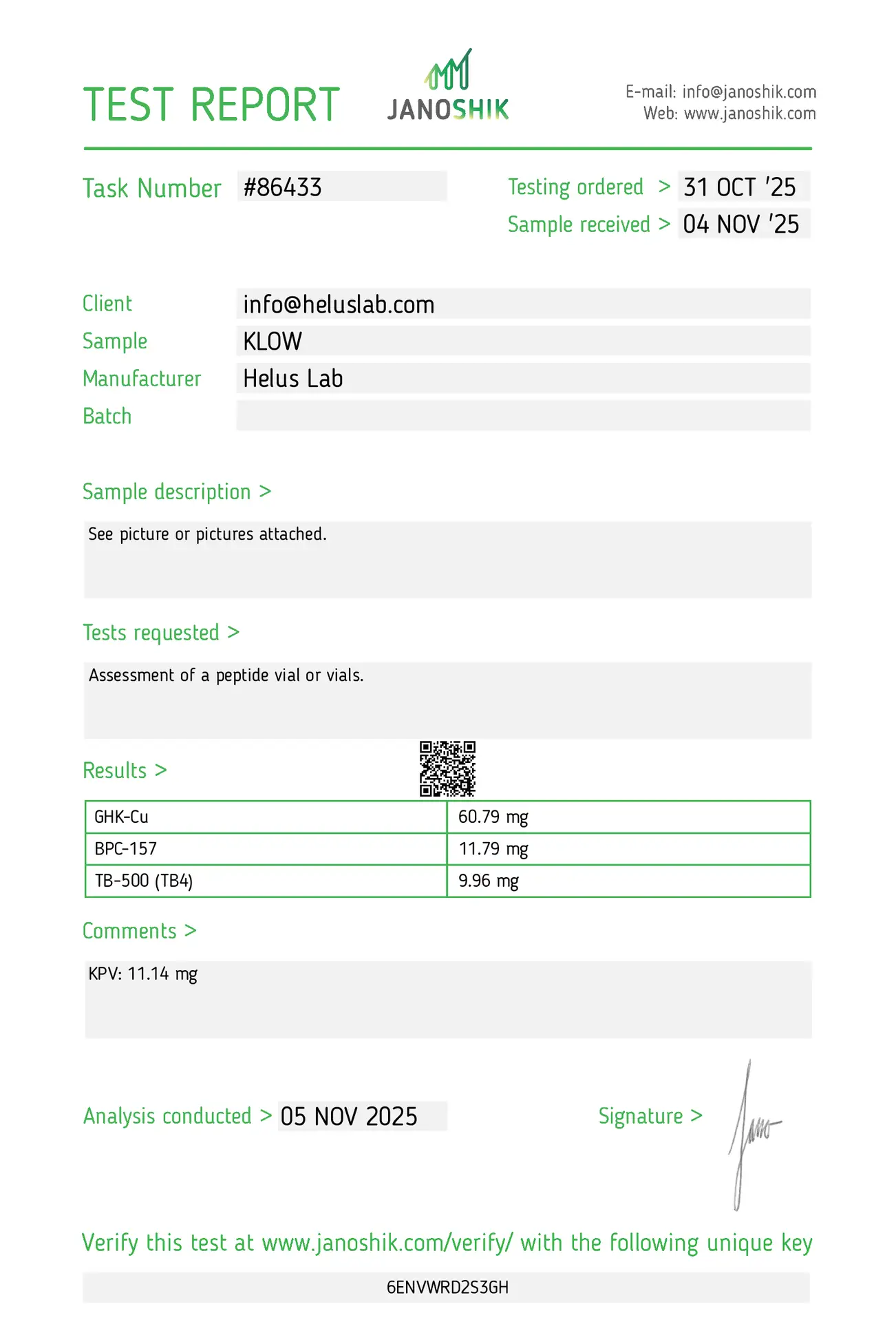 Certificates of Analysis (COAs) of Helus Lab Research Peptides